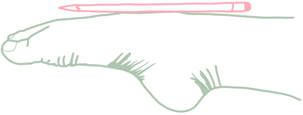 So, CAN I improve the aesthetics of my feet? – In short, it depends. When it comes to foot aesthetics in dance, the foot arch and how much range of motion the ankle has when pointing the foot are considered. It is not possible to increase the height of an arch with training, stretching, massage, devices, etc. The arch height is determined by genes, but can change if a person has an underlying health condition or experiences trauma to their foot (no, this does not include pointe shoes…) But, a dancer may be a candidate for improving their ankle range of motion when they point, a.k.a. “plantarflex”. One way to assess if more plantar flexion is achievable is the Pencil Test4.