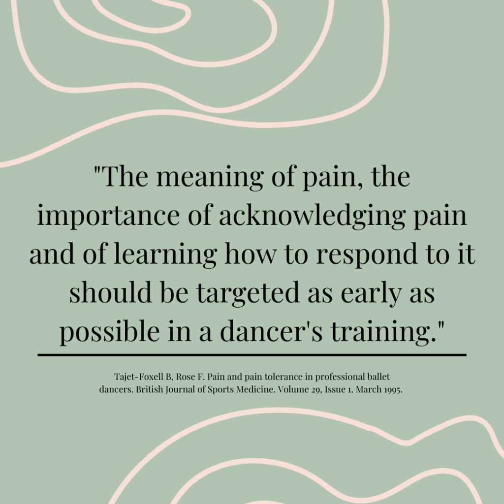 Studying dance taught me how to quickly notice when my body “felt off”. However, there were times I struggled to identify the pain’s severity and set a boundary on when I should seek medical attention. I quickly assumed my body would return to the pre-pain days with just a little rest. Going to sleep and then waking up the following morning with the same annoying pain after being hopeful that tomorrow will be a new day can be extremely disappointing. Pain can take a toll on anyone’s mental health, especially dancers. In fact, one study compared the pain coping styles of ballet dancers to other athletes and found that the ballet dancers displayed a higher catastrophizing response1.